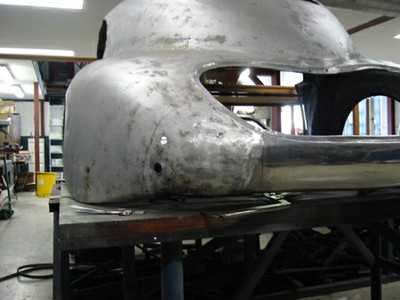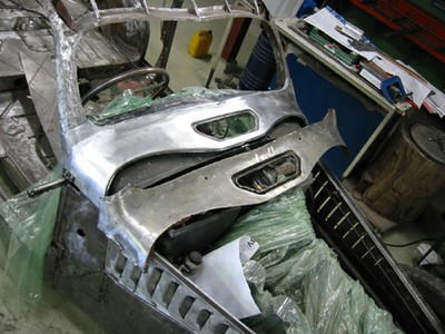 For this project, much of the aluminium sheet metal was shaped entirely by hand. By employing traditional techniques, we have produced body panels that are technically and visually indistinguishable from the original. This manual process, which we have mastered together, guarantees a seamless finish and a perfect fit for the body.