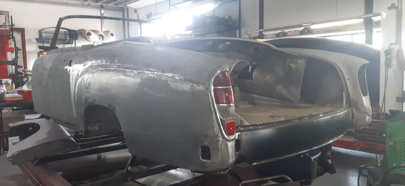The Mercedes-Benz W128 220SE, the last model in the iconic ‘Ponton’ series, arrived at our workshop as a bare chassis with significant holes and corrosion damage. This project required a thorough overhaul in our workshop to breathe new life into this luxury 6-cylinder.