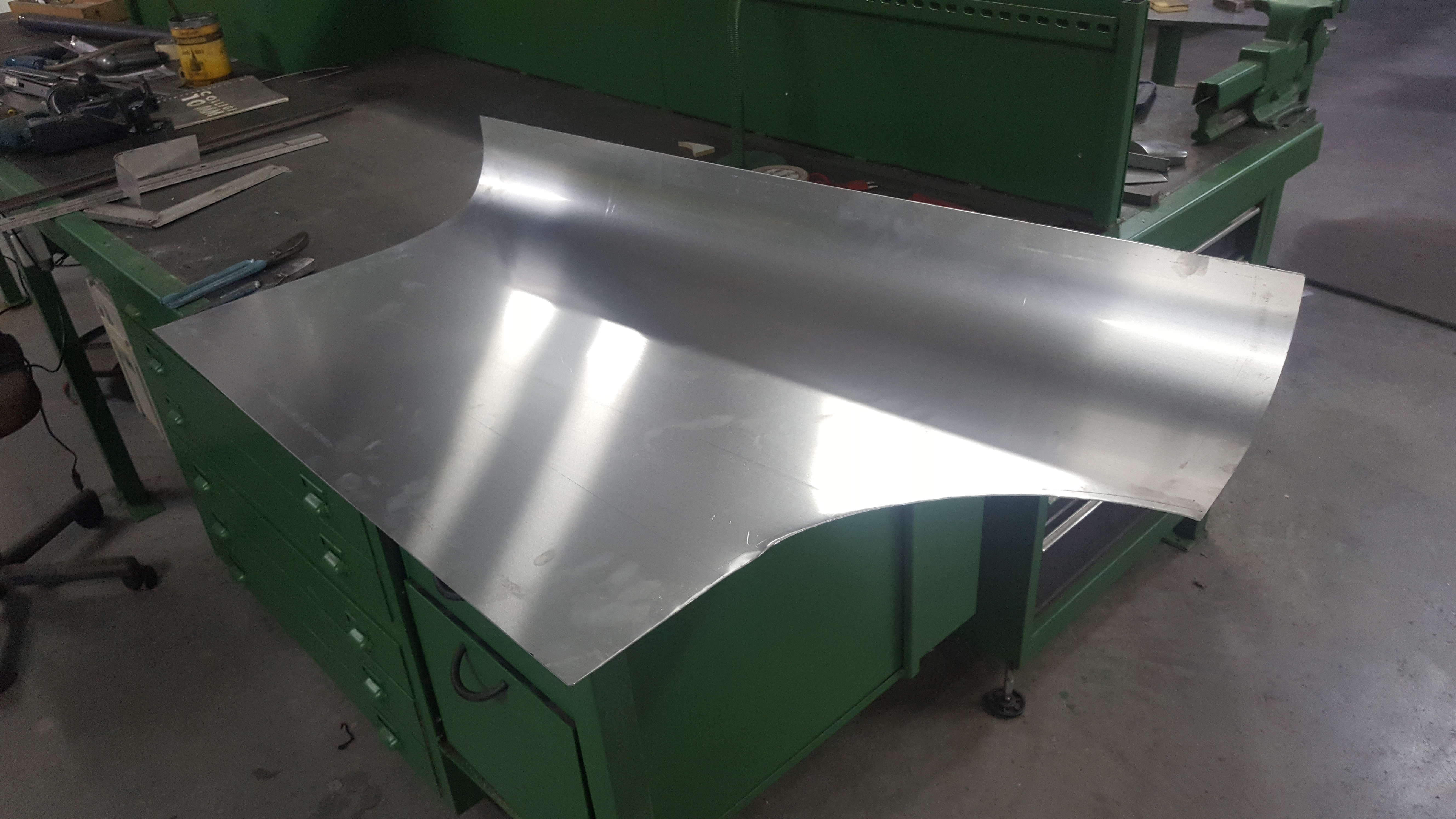 When the Jaguar XK120 arrived at our workshop, the car appeared ‘in very good condition’ at first glance. The customer had simply asked us to correct the alignment of a misaligned headlamp. However, during our inspection, numerous defects came to light. For instance, the entire bodywork was found to be covered with a layer of no less than 0.7 mm of body filler (see photo on the right).