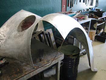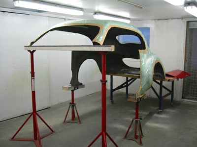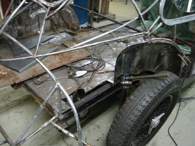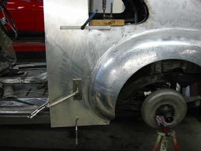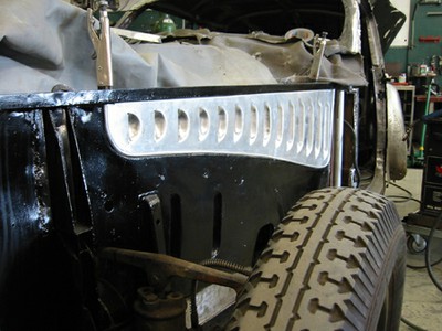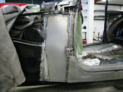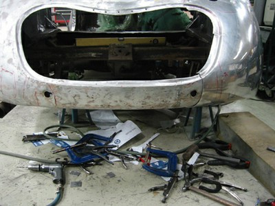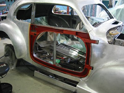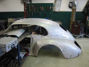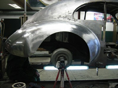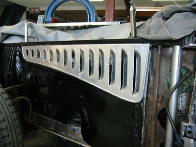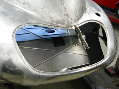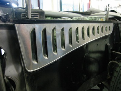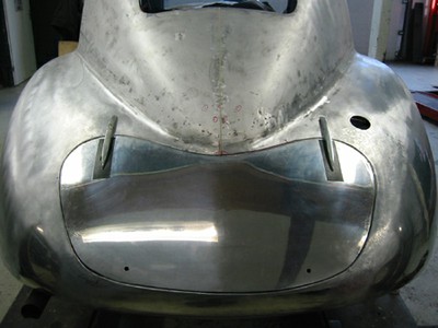 Bij dit project is veel van het aluminium plaatwerk volledig met de hand in vorm gebracht. Door gebruik te maken van traditionele technieken hebben wij carrosseriedelen vervaardigd die technisch en visueel niet van het origineel te onderscheiden zijn. Dit handmatige proces, dat wij gezamenlijk beheersen, garandeert een naadloze afwerking en een perfecte pasvorm van de body.