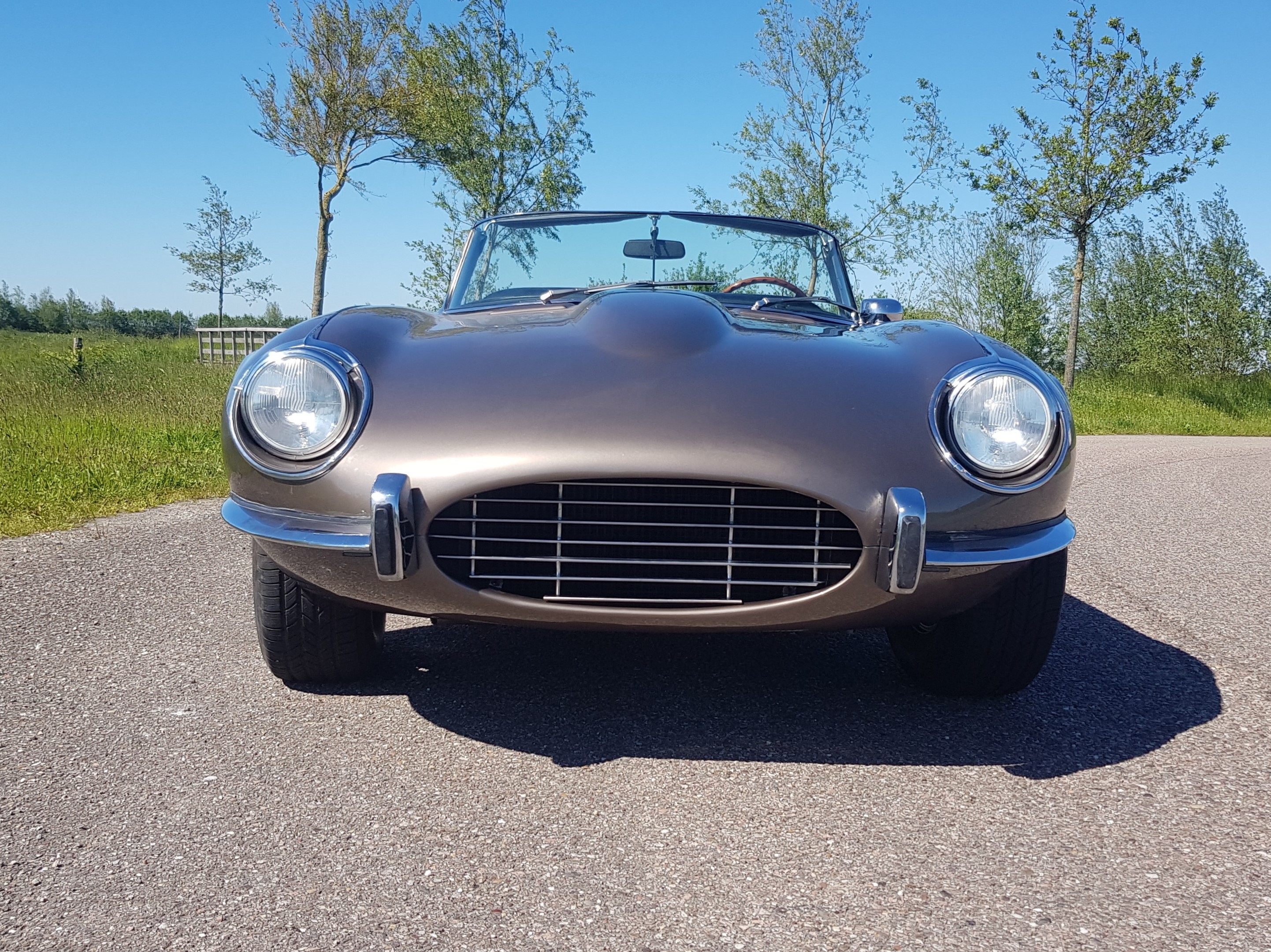 Ook aan de voorzijde zijn ingrijpende aanpassingen gedaan om de elegante lijnen van de vroege E-Types terug te brengen. De luchthapper aan de onderzijde is verwijderd en de grille is volledig op maat gemaakt. Hierdoor heeft de voorzijde nu de onmiskenbare uitstraling van een Jaguar E-Type S1, perfect passend bij de V12-body.