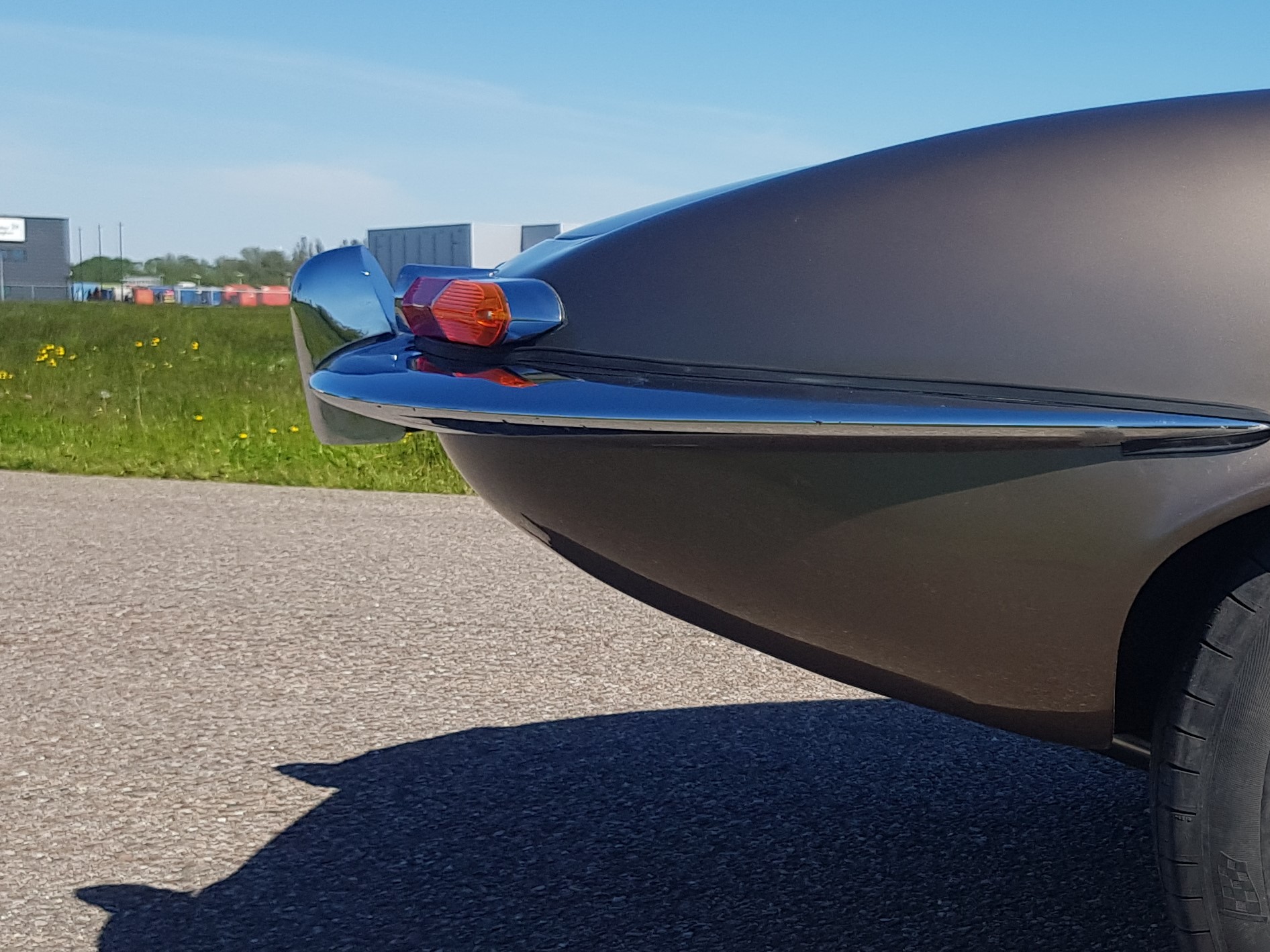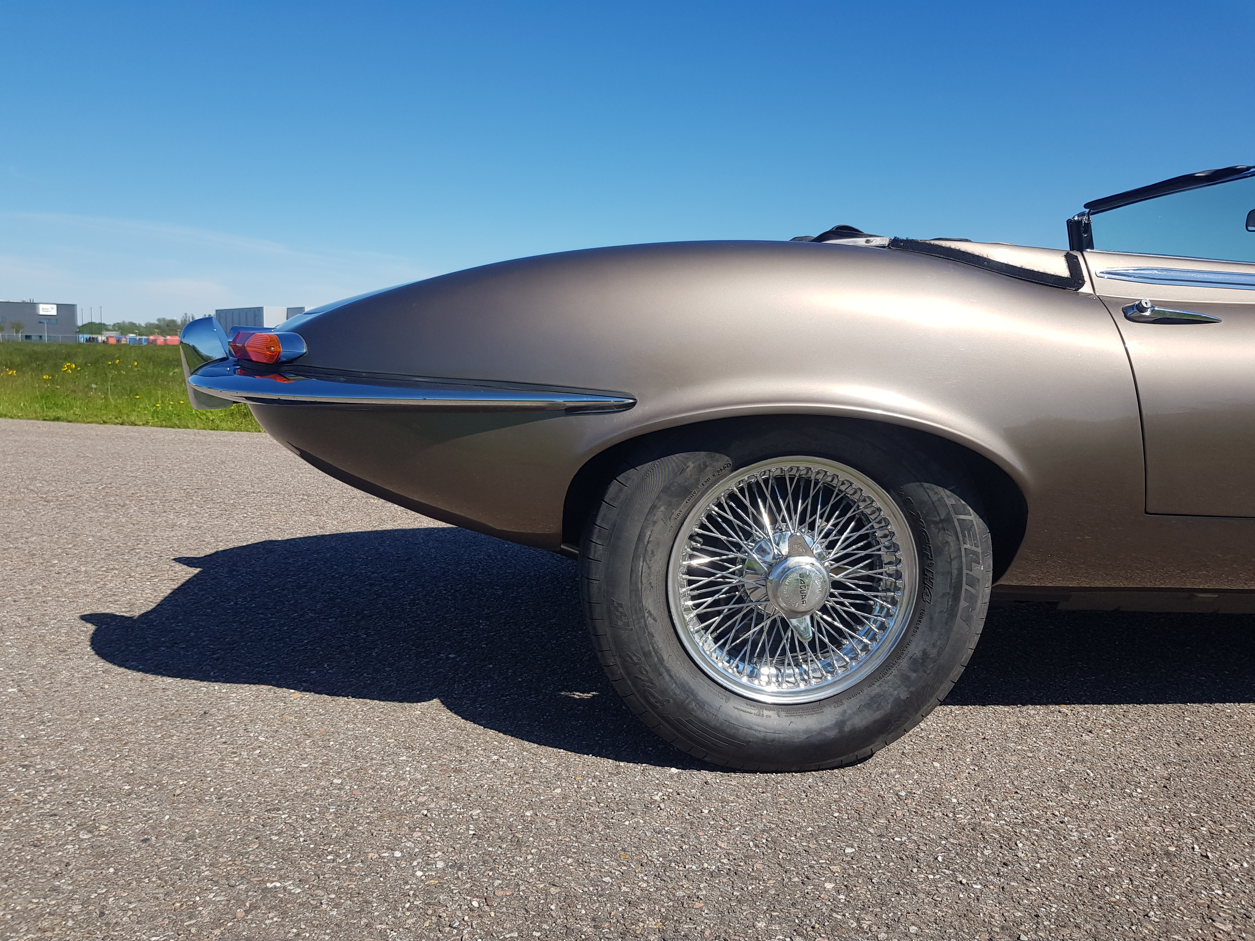 De achterzijde van deze E-Type heeft een ingrijpende gedaanteverwisseling ondergaan. Met behulp van het Engelse wiel is het plaatwerk opnieuw vormgegeven, waarbij de achterzijde subtiel met 3 cm is verhoogd voor een krachtiger profiel. Om de gewenste 'S1-look' te realiseren, is de auto voorzien van een handgemaakte aluminium brandstoftank, een nieuwe bumper en de iconische kleinere achterlichten van de Jaguar E-Type Series 1.