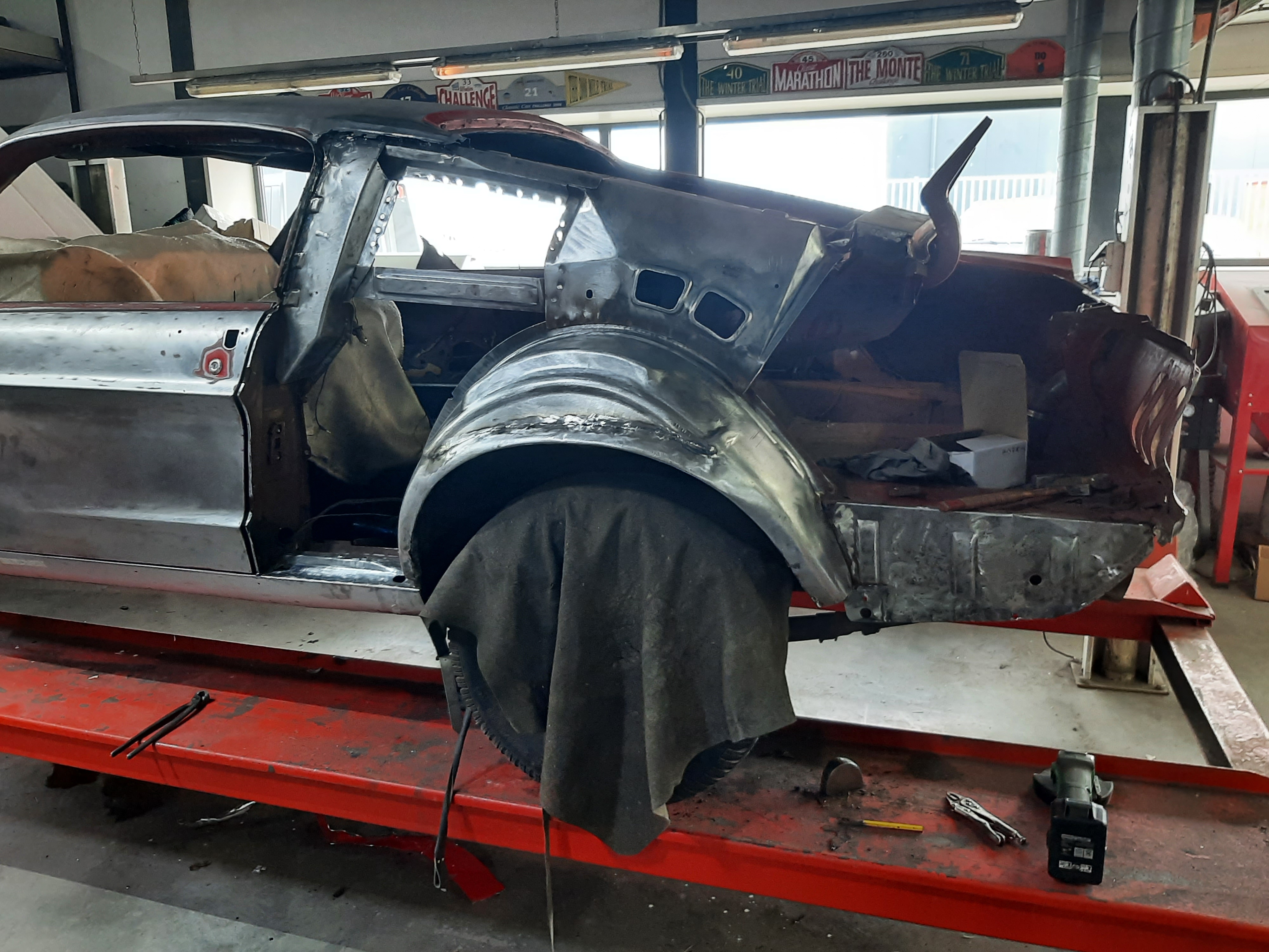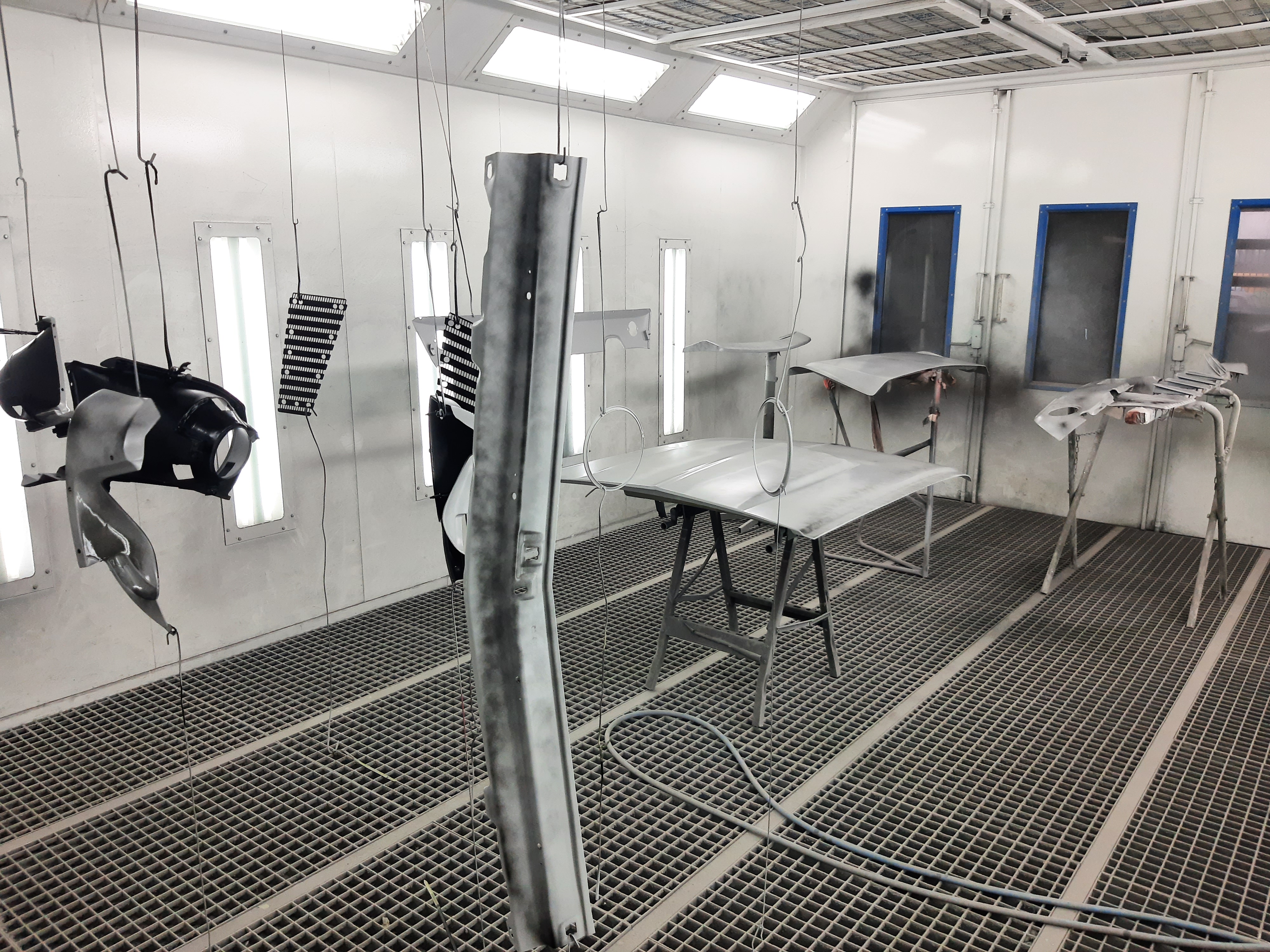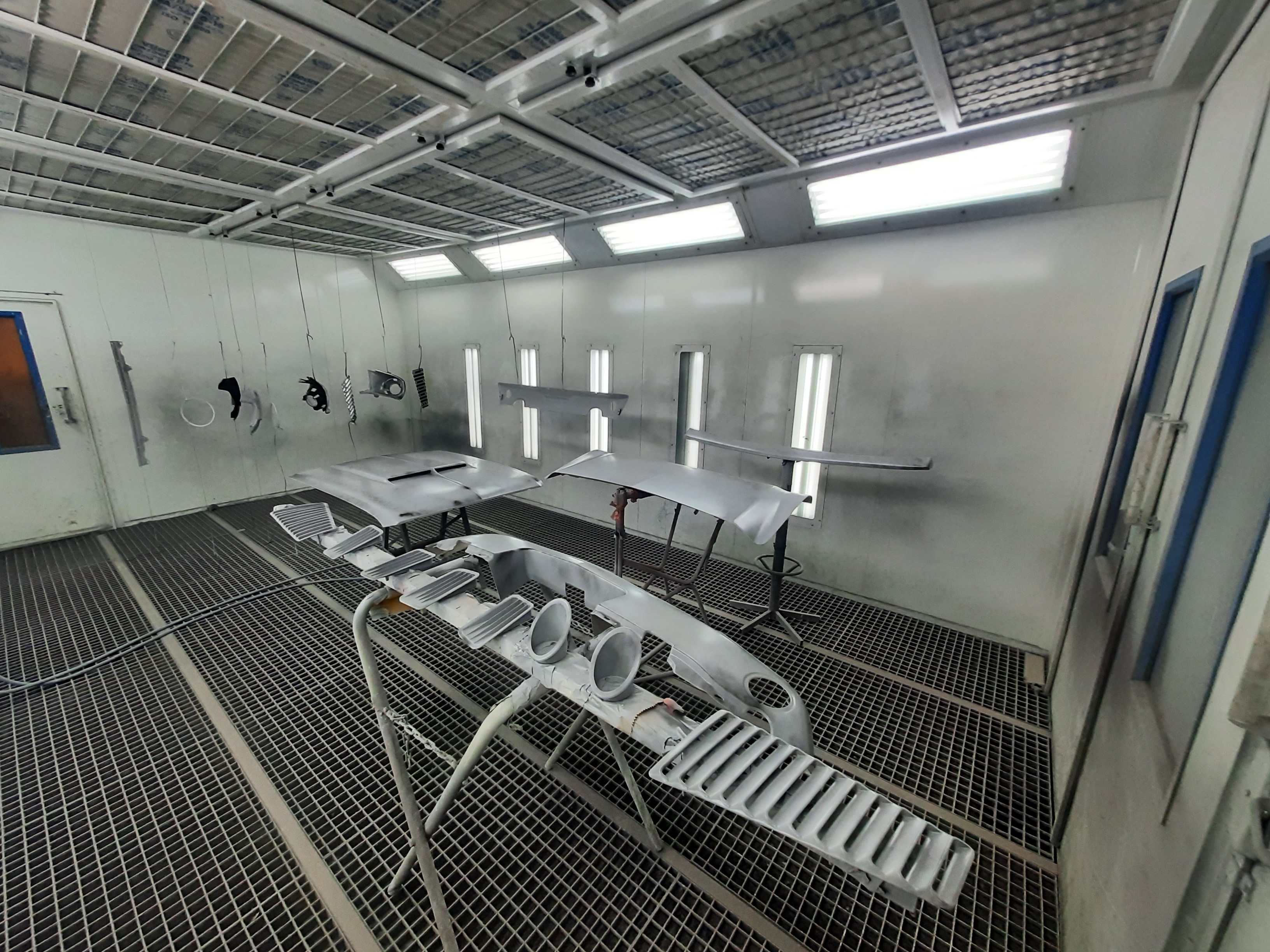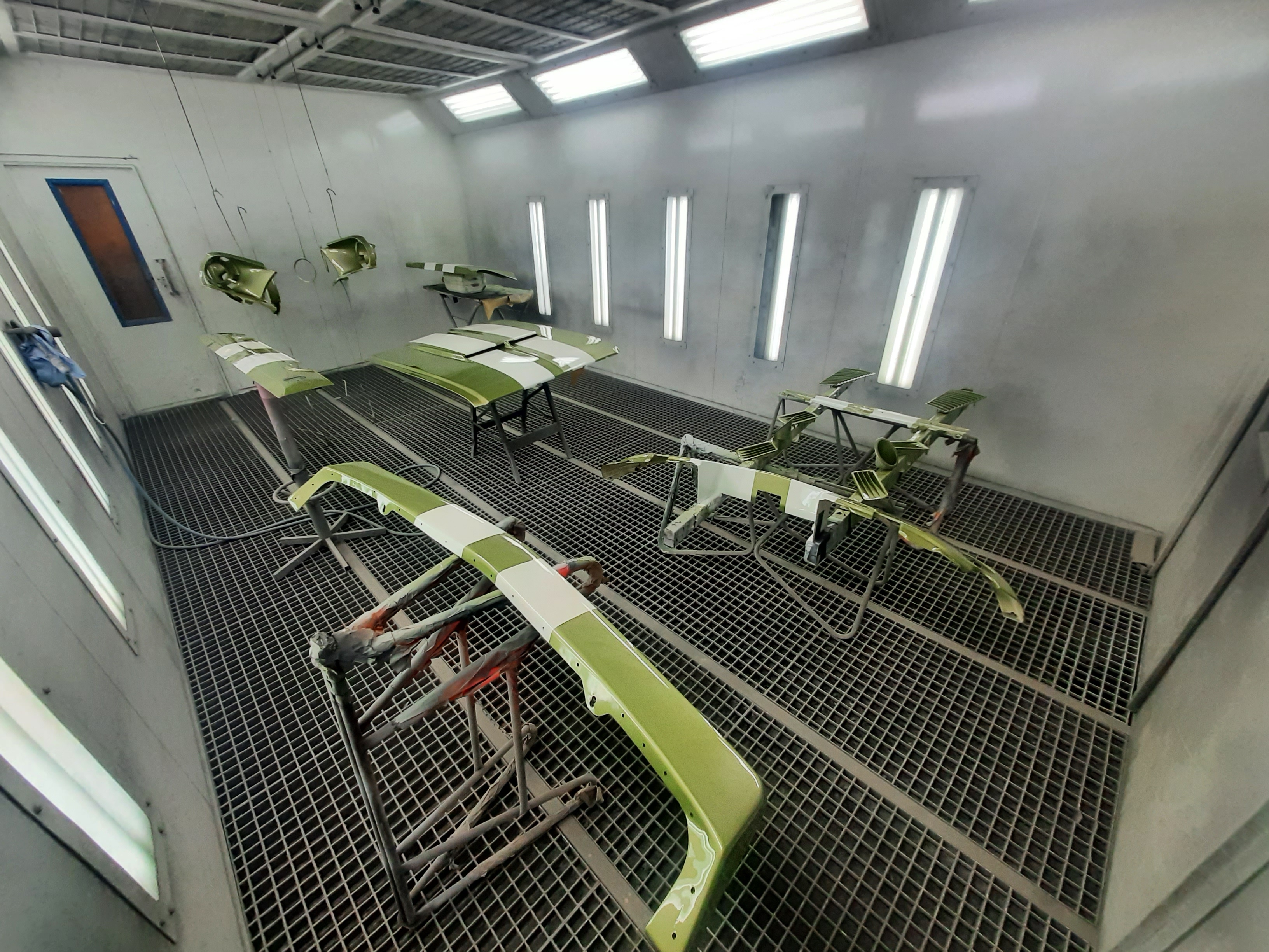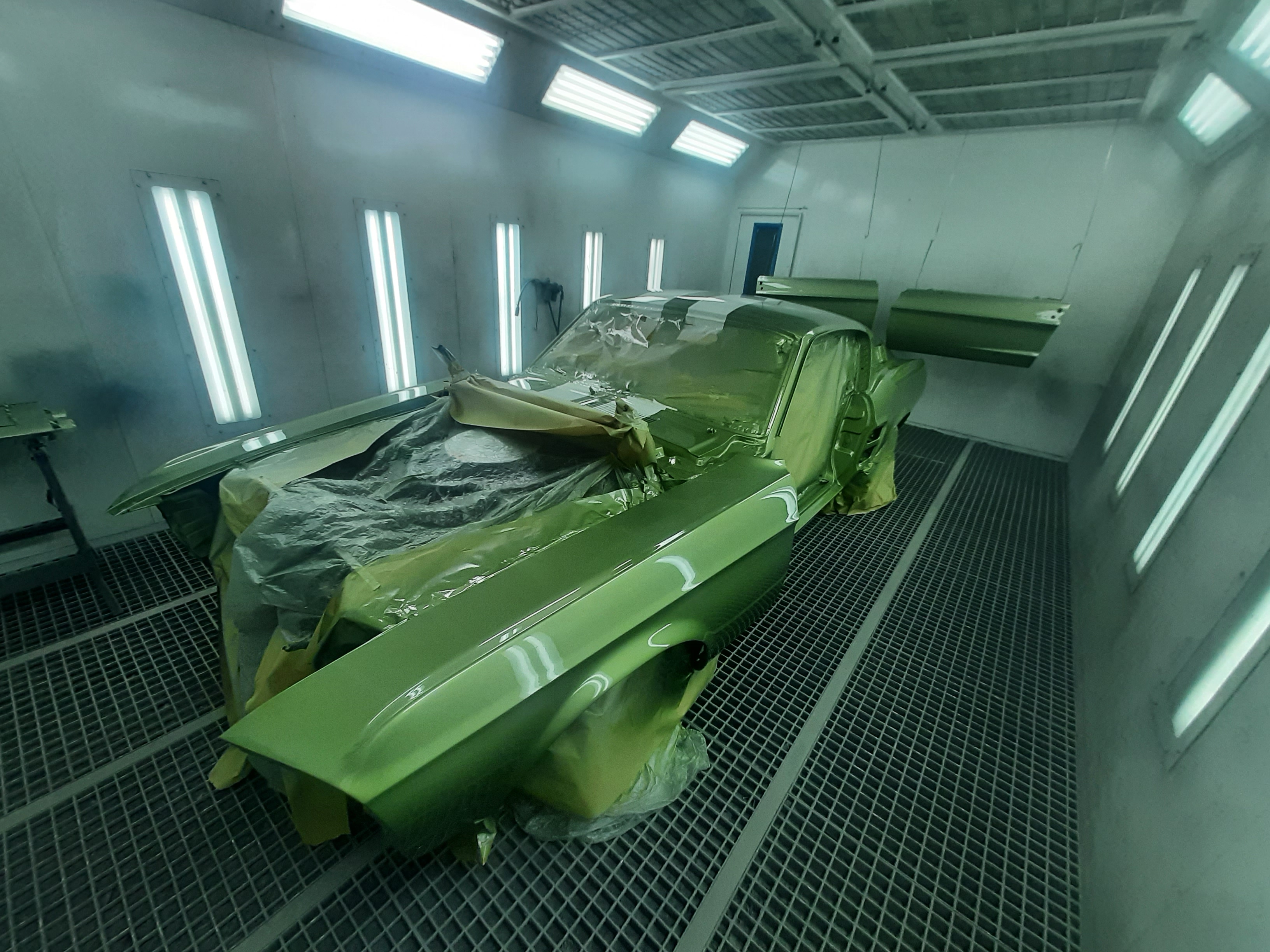 Ford Mustang Fastback 1968_losse onderdelen in spuitcabin.jpg